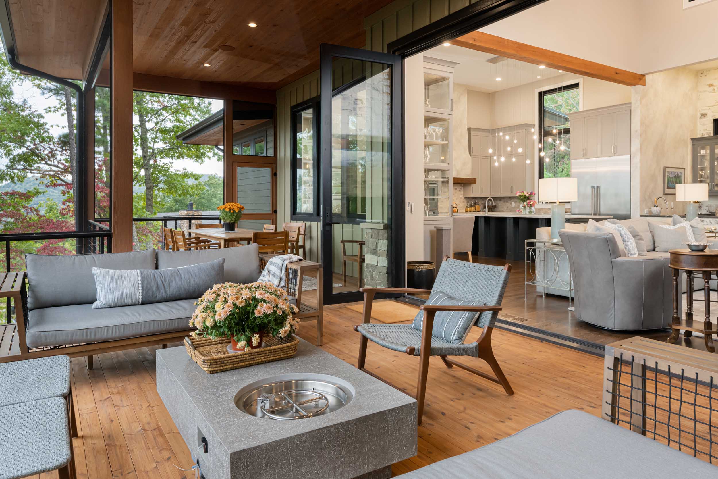 This mountain contemporary home exemplifies biophilic design. It has our Energy Star, Greenbuilt, Indoor AirPlus, Aging-In-Place, and Low-Maintenance standards. Stylish, transitional and healthy furniture by ID.ology Interiors & Design and Atelier Maison & Co.