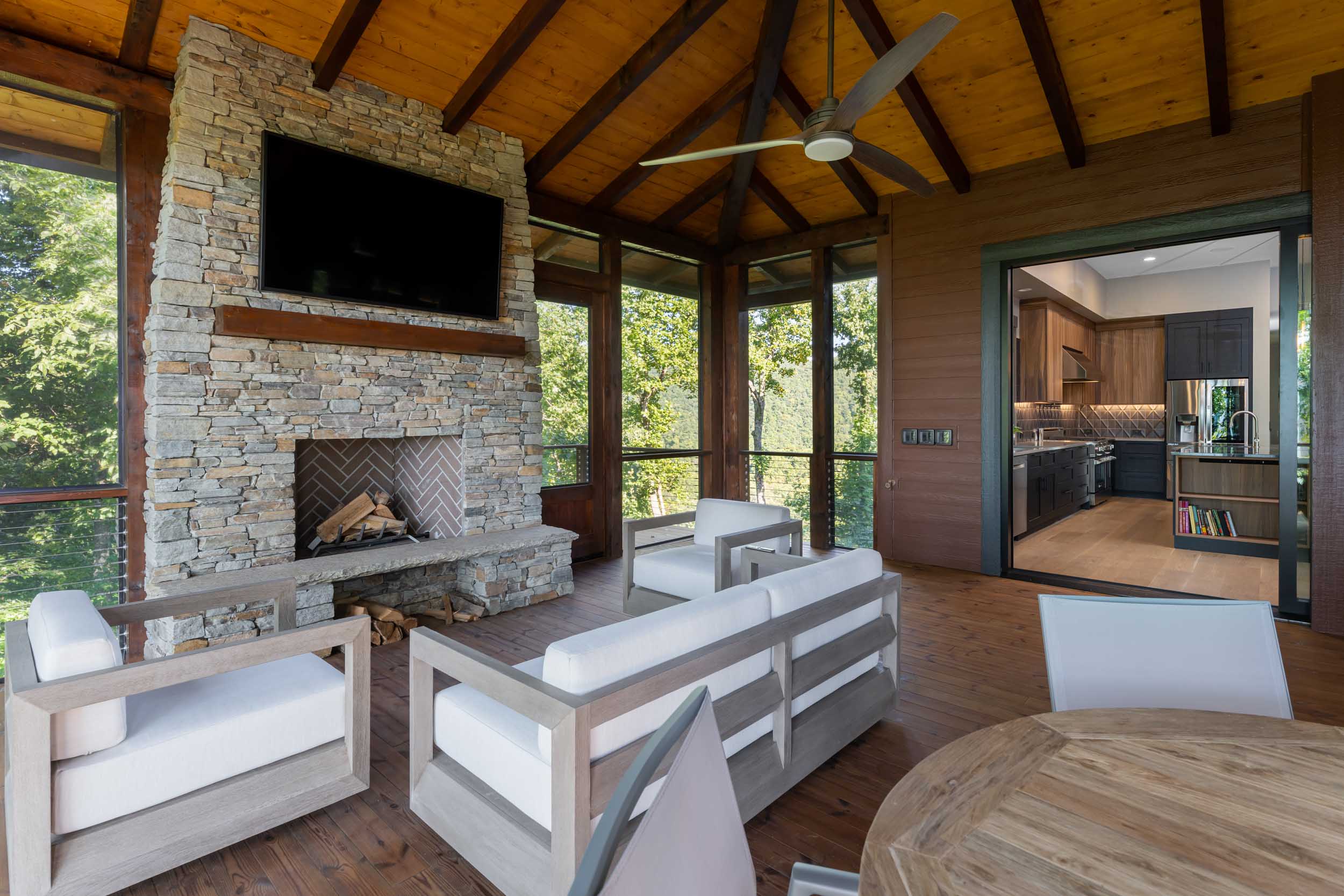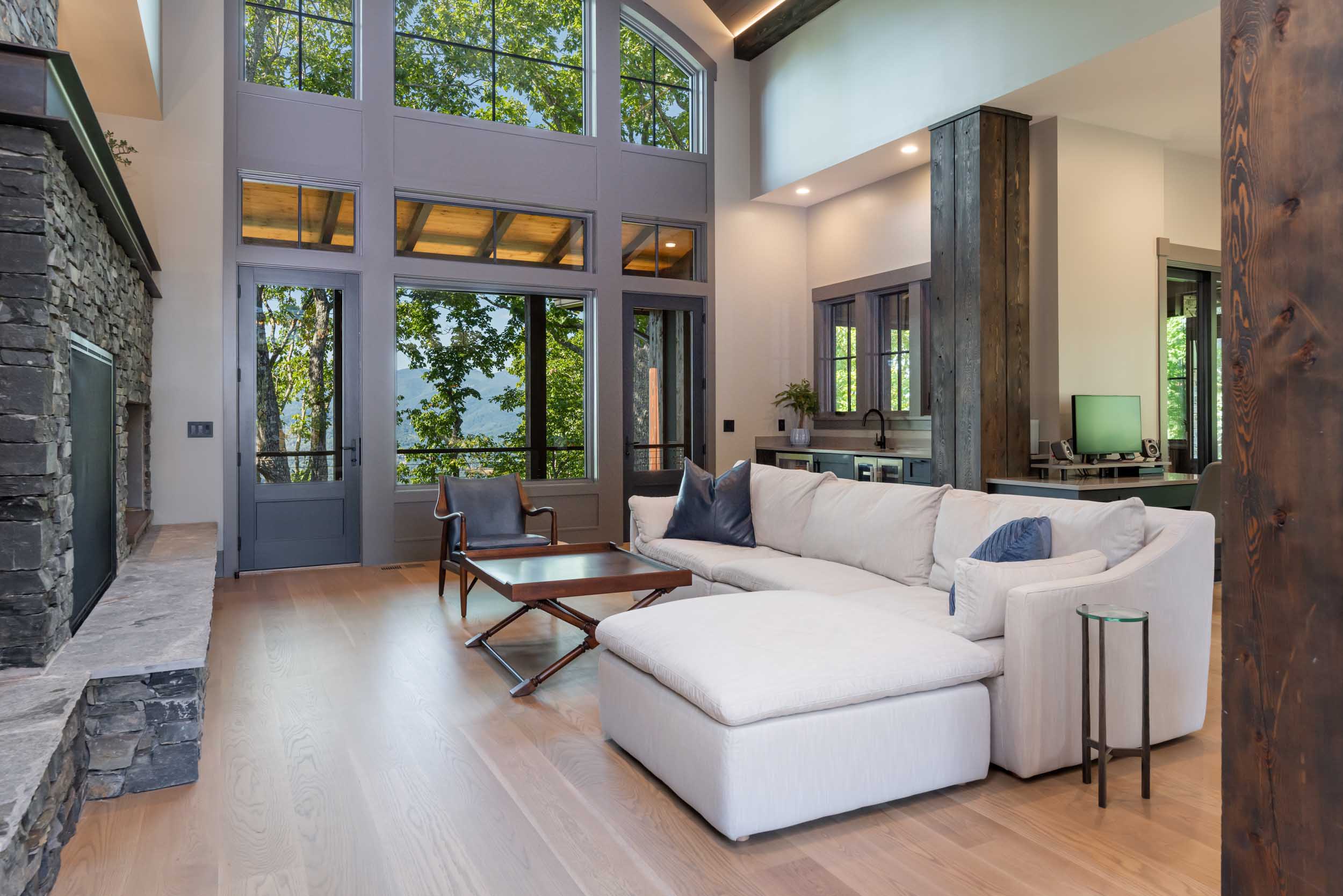 - Dramatic tongue and groove throughout the main level that connects to outdoor living spaces