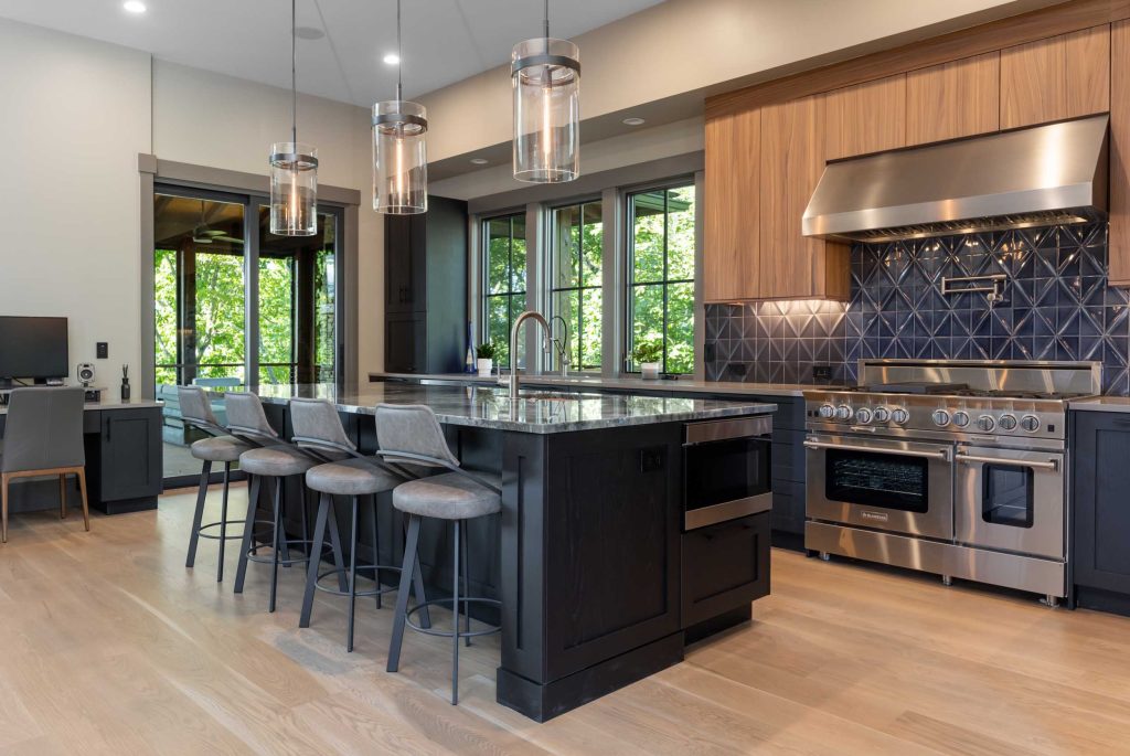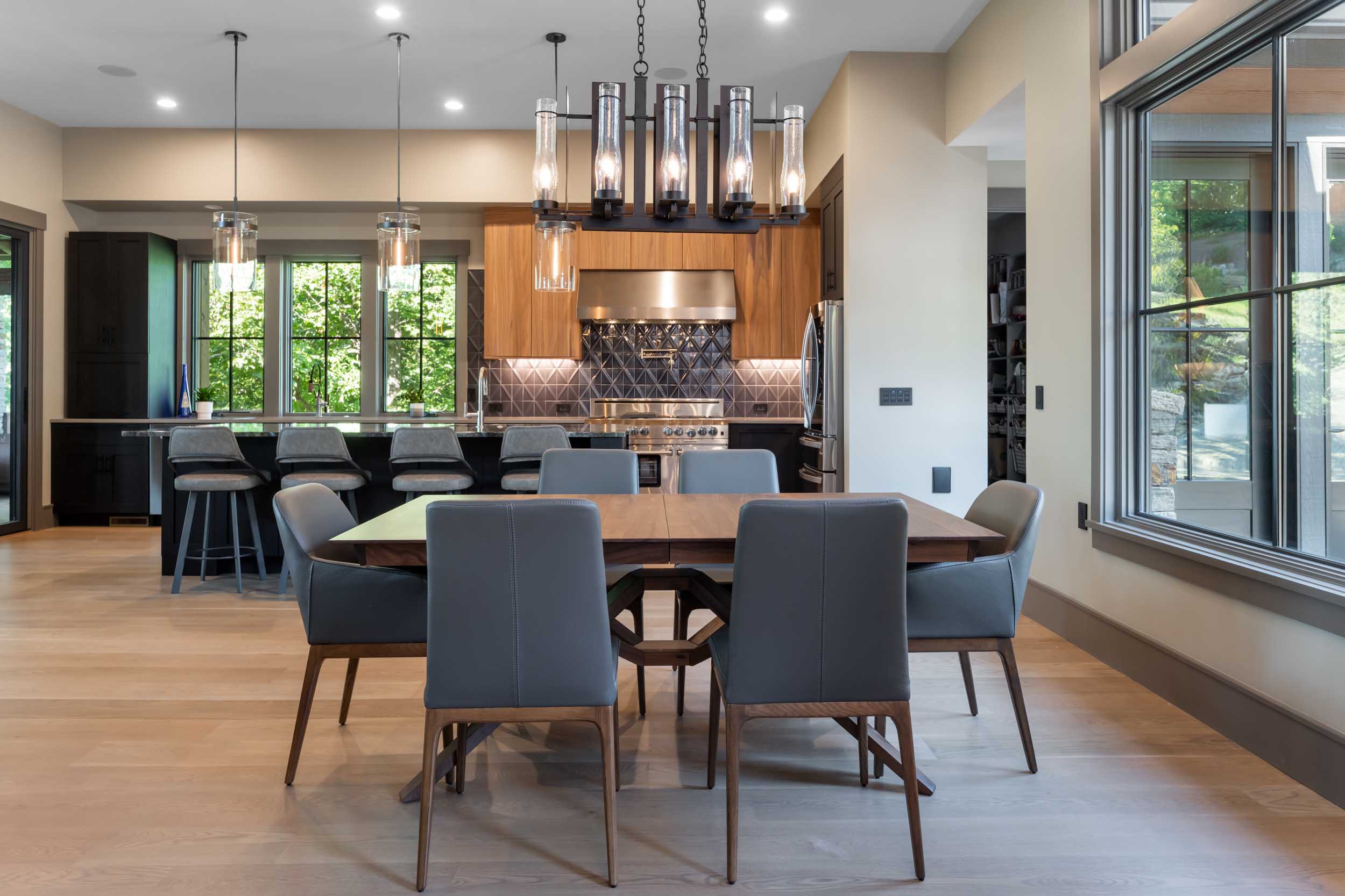 - Thoughtful use of color and textured elements create depth and variety throughout the home