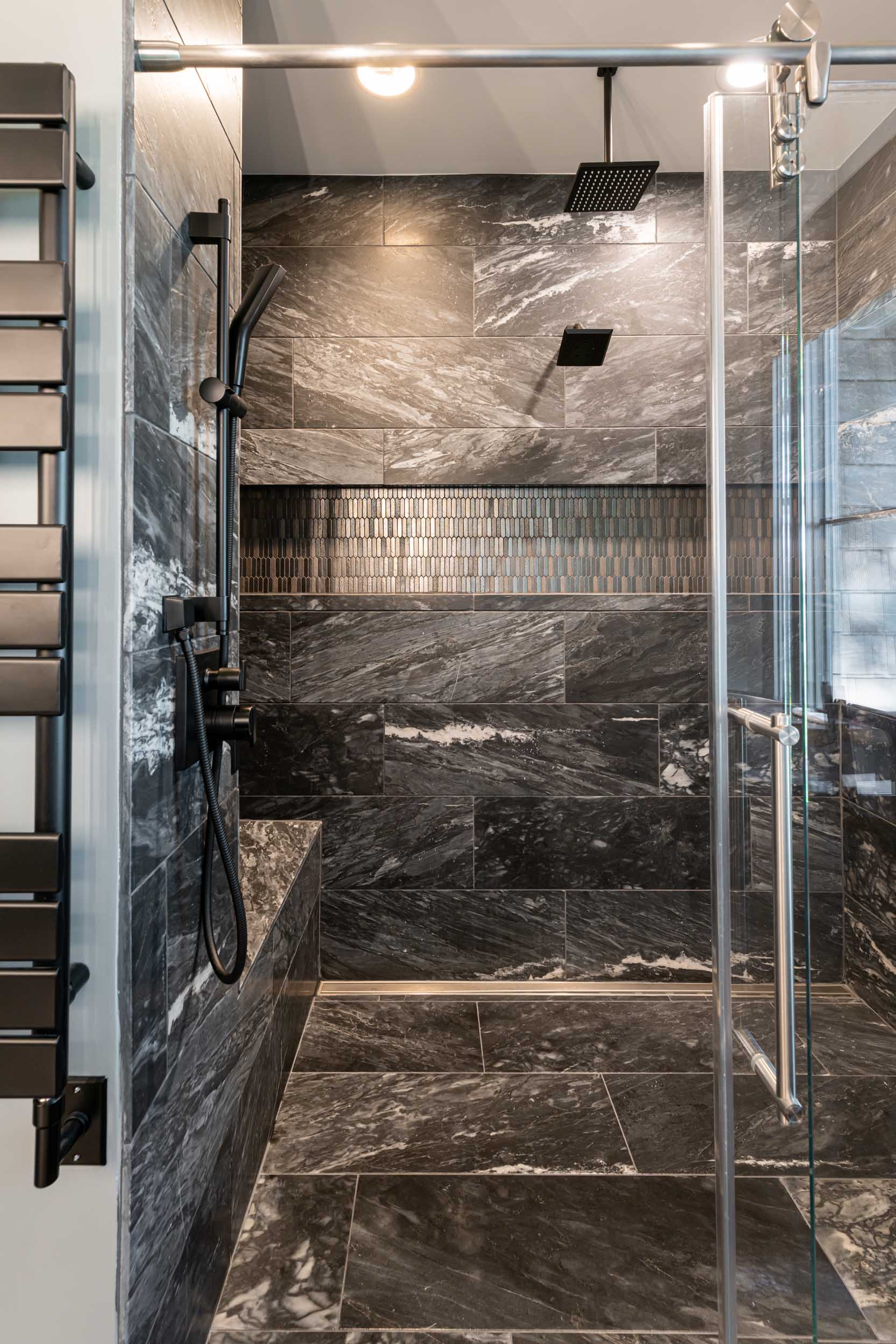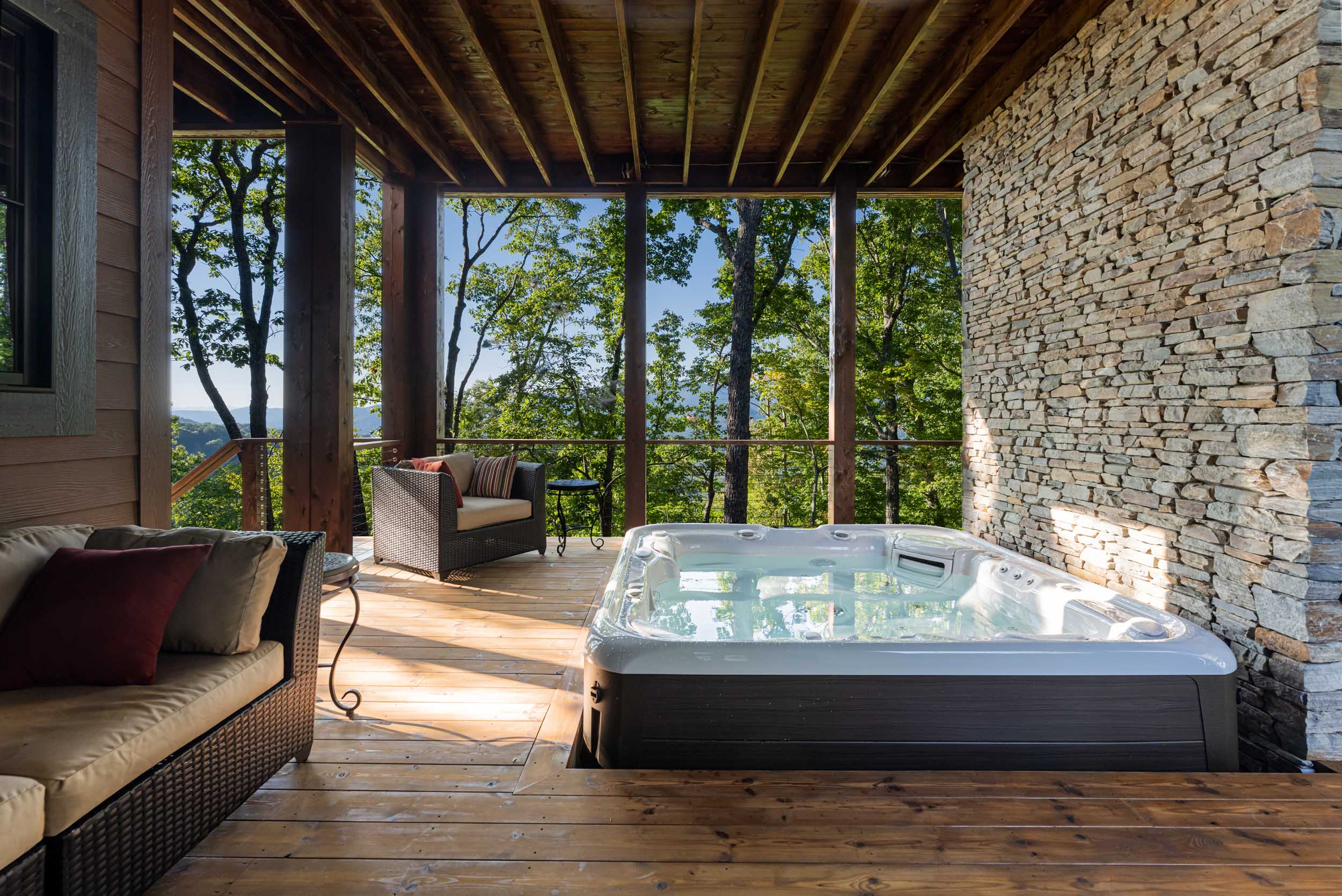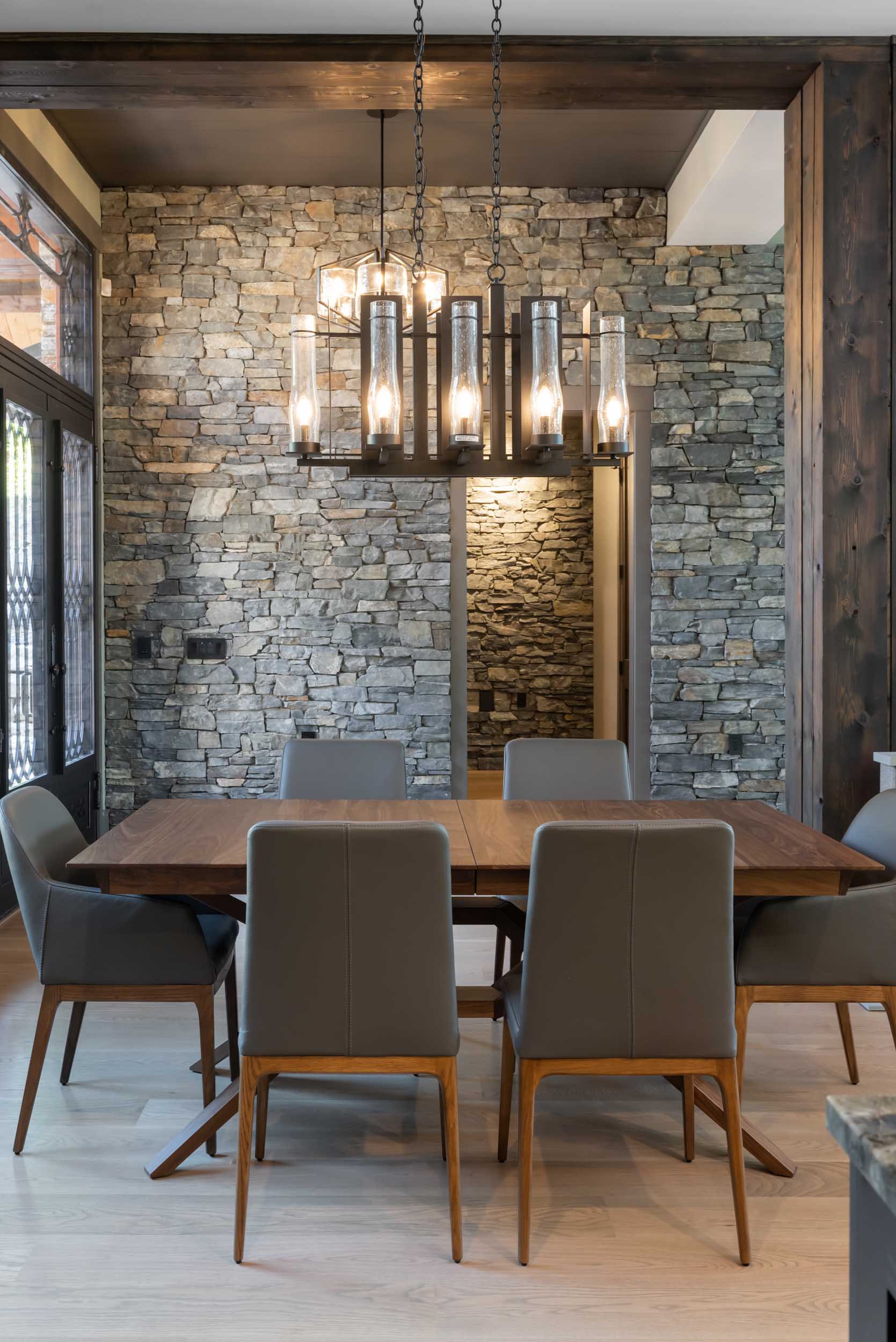 - Eye-catching interior stone accent walls, copper ceiling and wall details