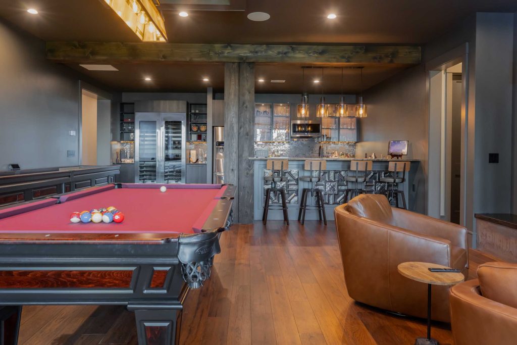 - Home gym, game room with secondary kitchen