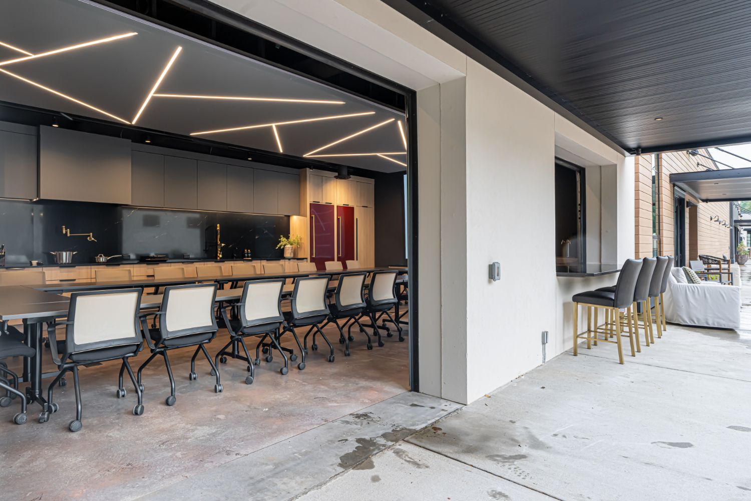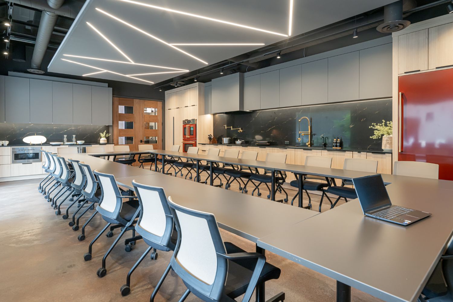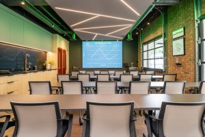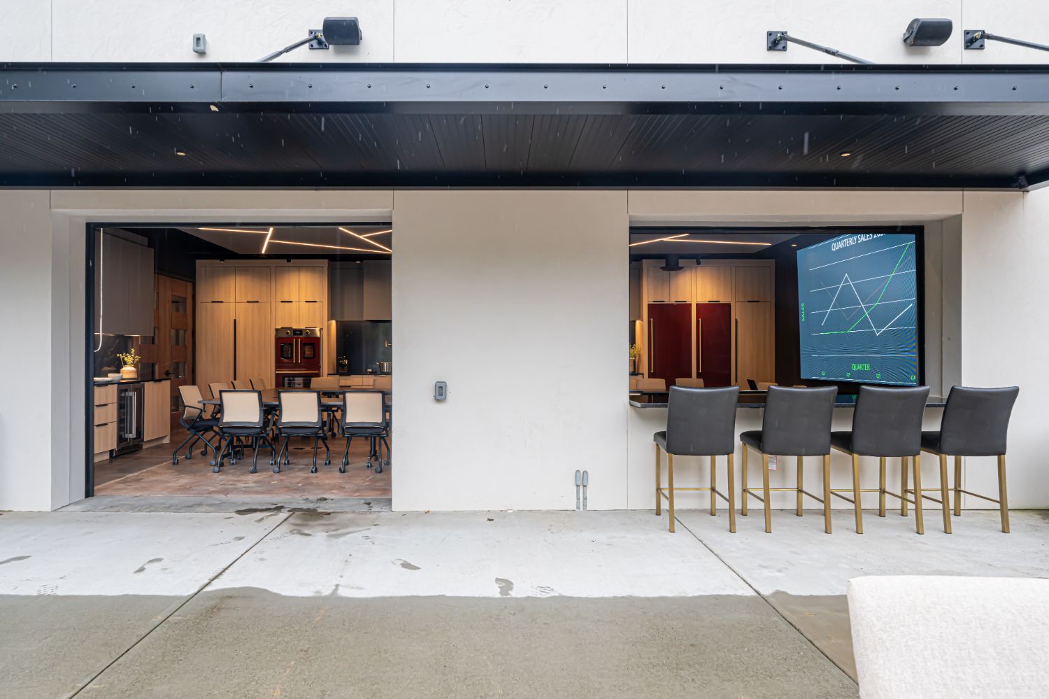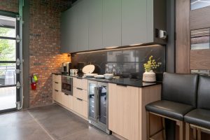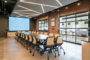 The standout feature of our new office is the main conference room, equipped with a wall-sized LED TV, a commercial kitchen, and garage-style doors that open up to an outdoor entertaining area. This space provides a dynamic and versatile environment for meetings, events, and collaboration. We take pride in our renovated office, a testament to our craftsmanship and dedication to sustainable building practices.