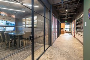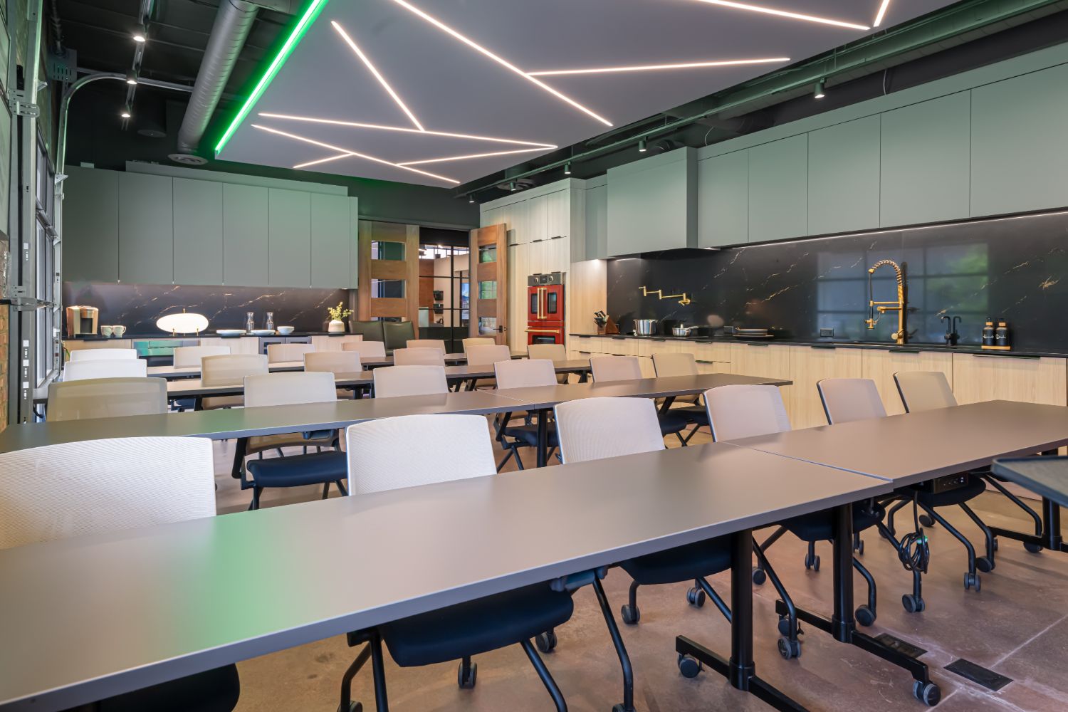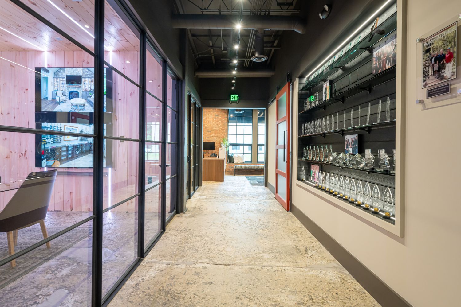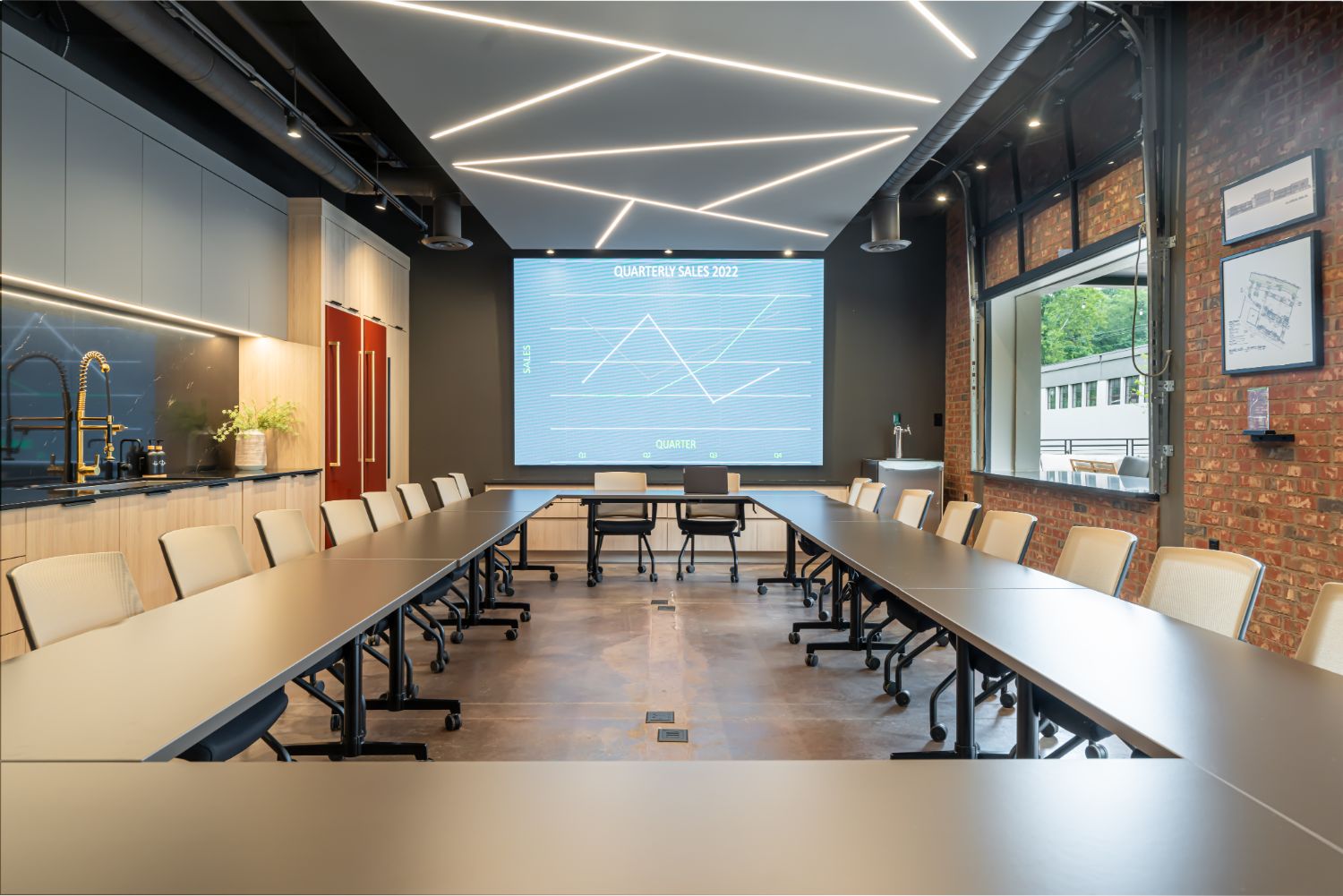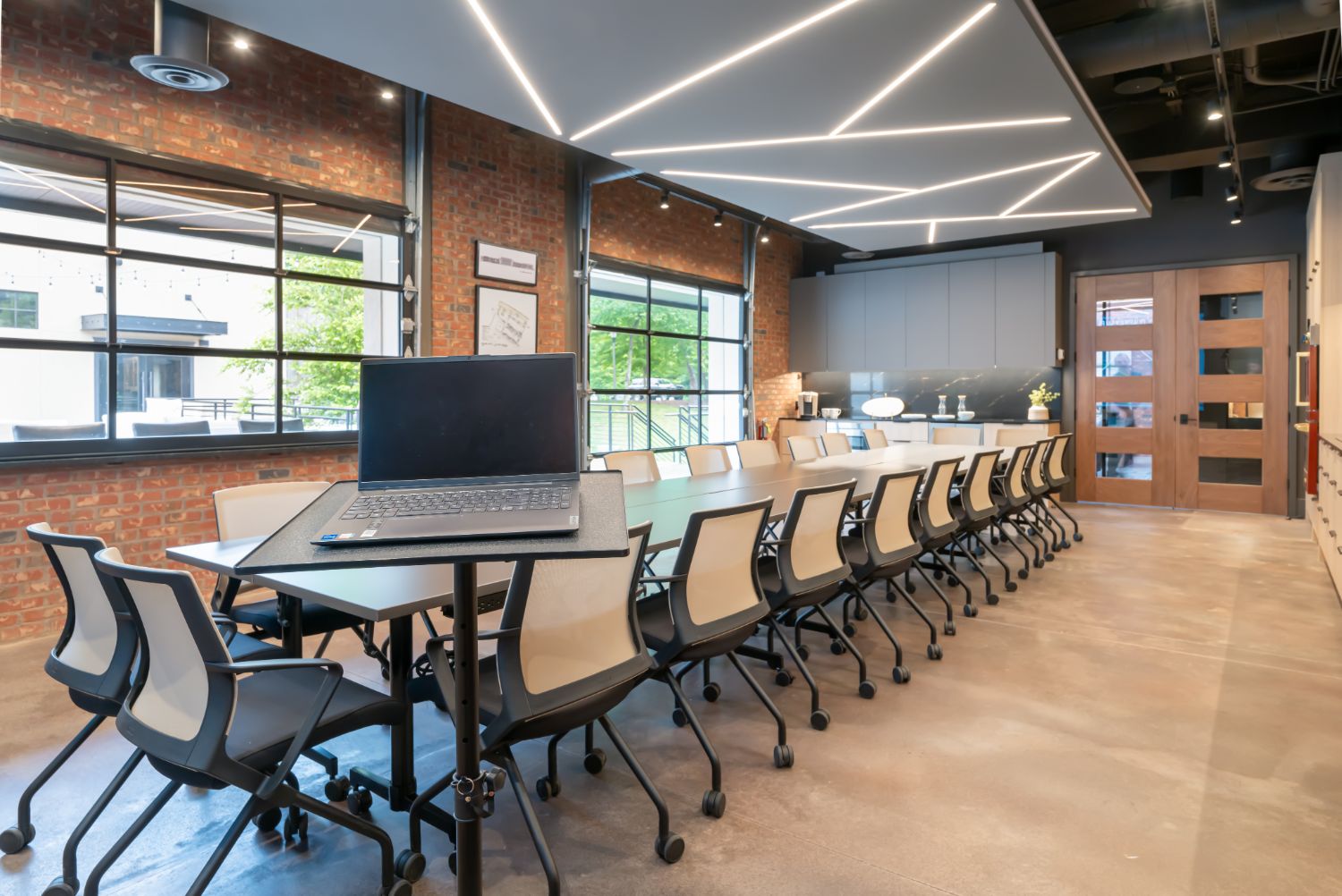 The standout feature of our new office is the main conference room, equipped with a wall-sized LED TV, a commercial kitchen, and garage-style doors that open up to an outdoor entertaining area. This space provides a dynamic and versatile environment for meetings, events, and collaboration. We take pride in our renovated office, a testament to our craftsmanship and dedication to sustainable building practices.