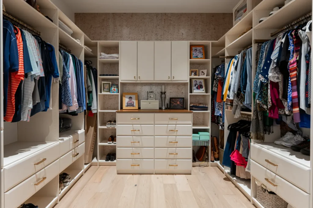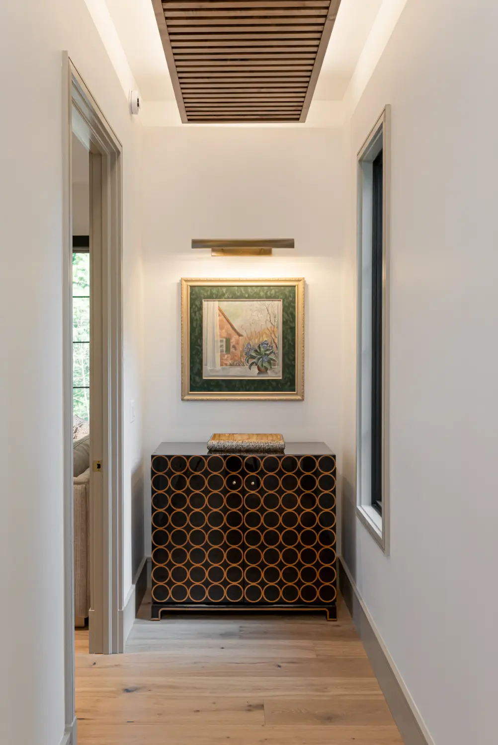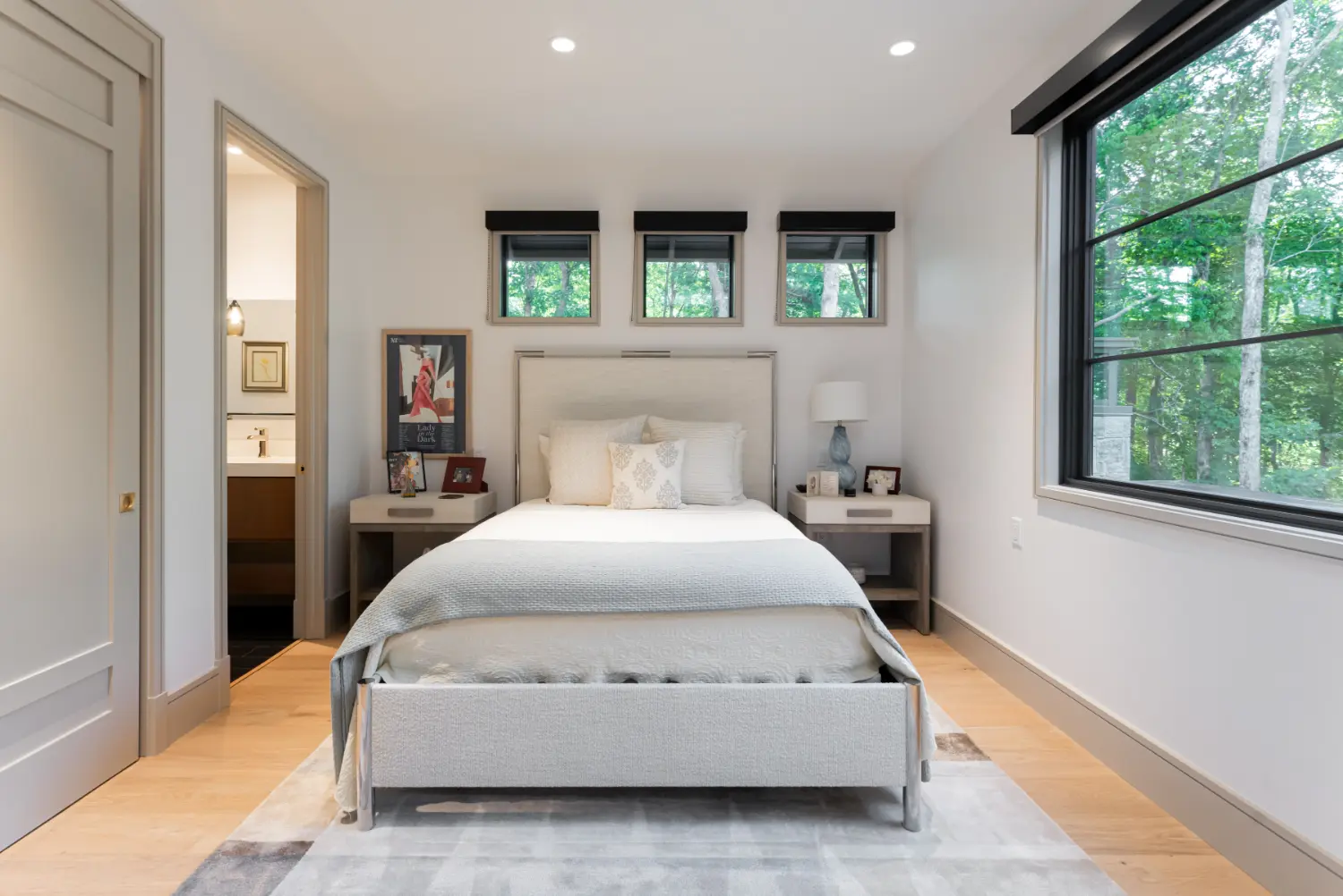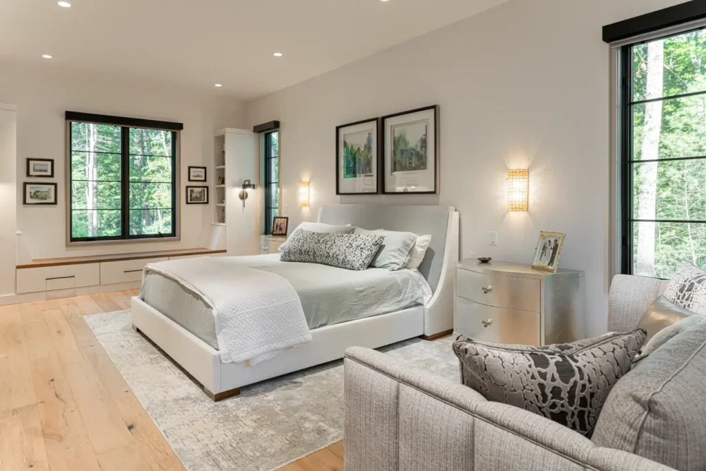 The master bedroom stands out with a captivating mix of stucco and wood detailing. This thoughtful combination adds depth and texture, making it a perfect place to unwind after a long day.