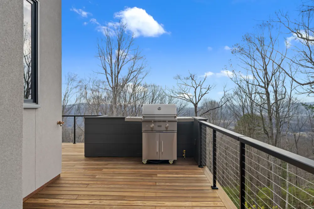 Overlook Escape is a custom luxury home located in the Couch Mountain neighborhood, an environmentally conscious community that overlooks 138 acres of lush nature preserve. The 4-bedroom, 4.5-bathroom home spans 6,293 total square feet, with 3,175 heated square feet. The home’s interior design was crafted by ID.ology Interiors & Design, and the furnishings were provided by Atelier Maison & Co.