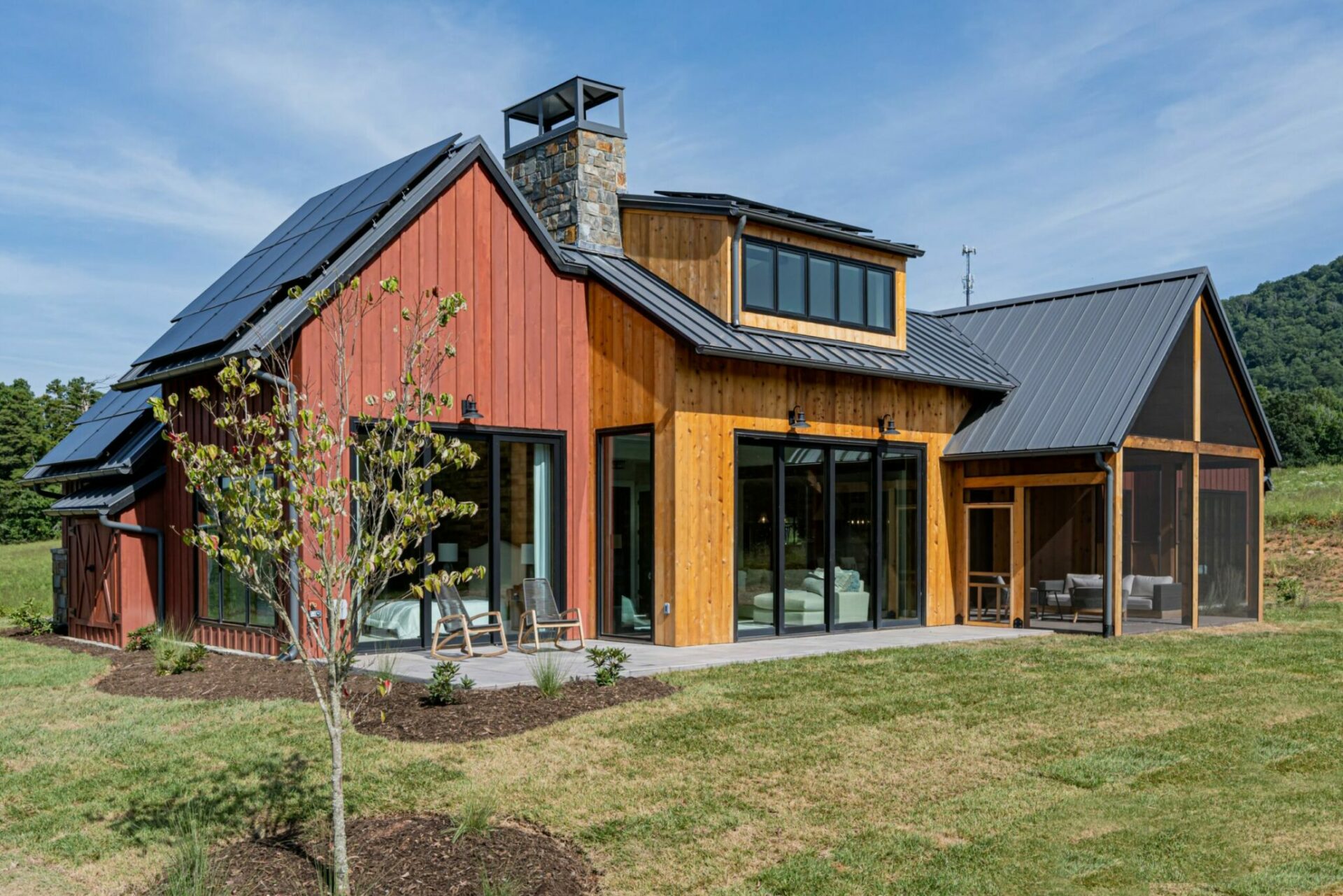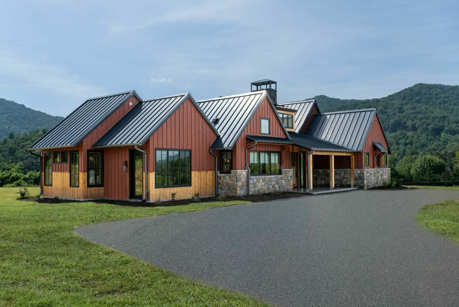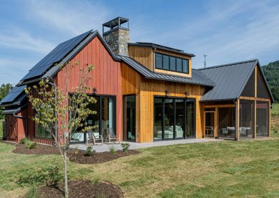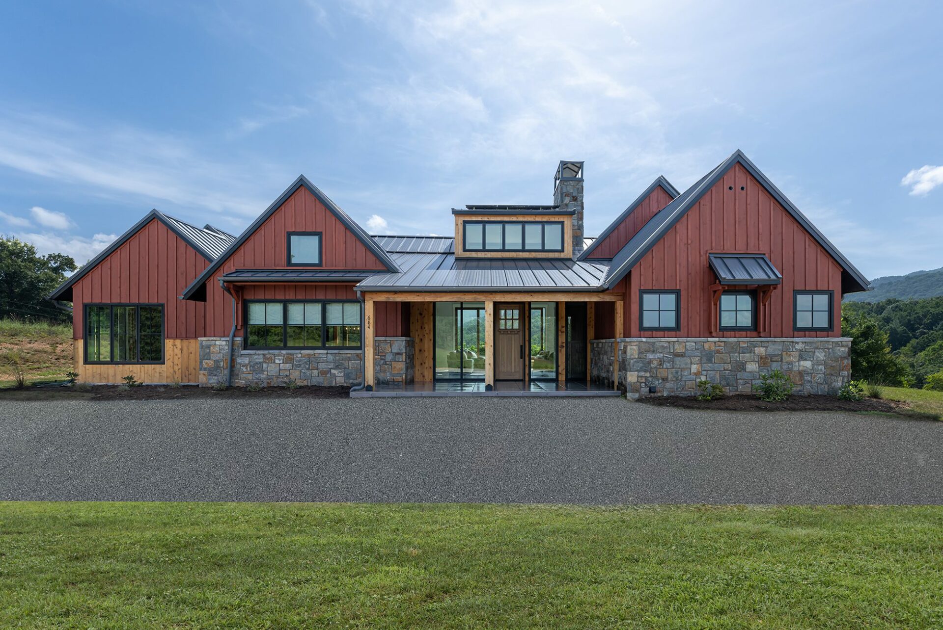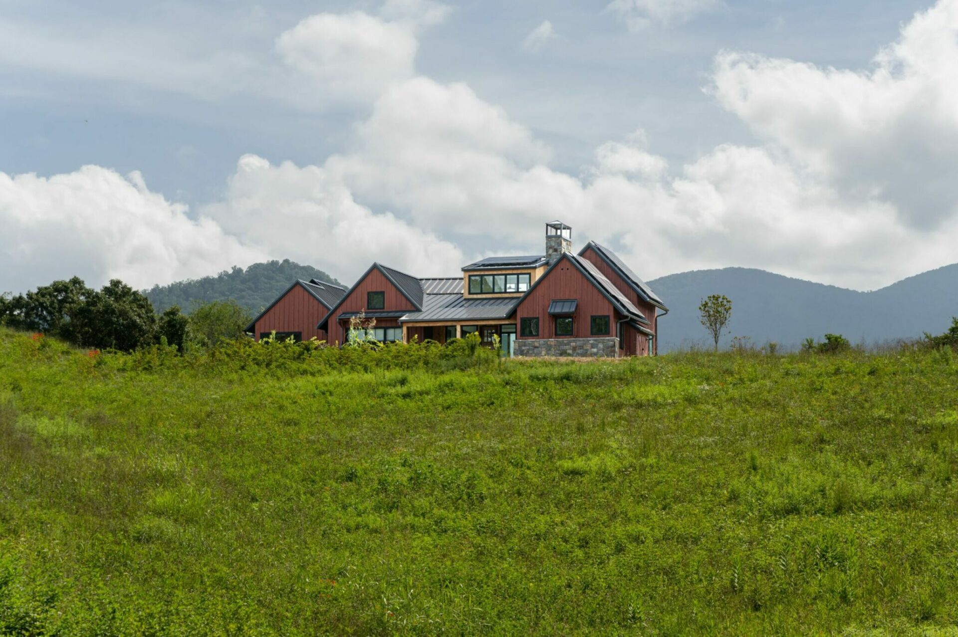 As former Asheville residents, our clients purchased land in north Asheville to build a vacation home where they would one day retire to. It was important for them to have a home that was aging-in-place certified and energy efficient. This berry-colored farmhouse is a single level build, includes stepless entryways, wider doorways, an accessible shower with seating, and plenty of space around furniture and cabinetry to maneuver around the home safely. This home also scored -22 on the HERS scale, meaning that it produces 22% more power than it uses.