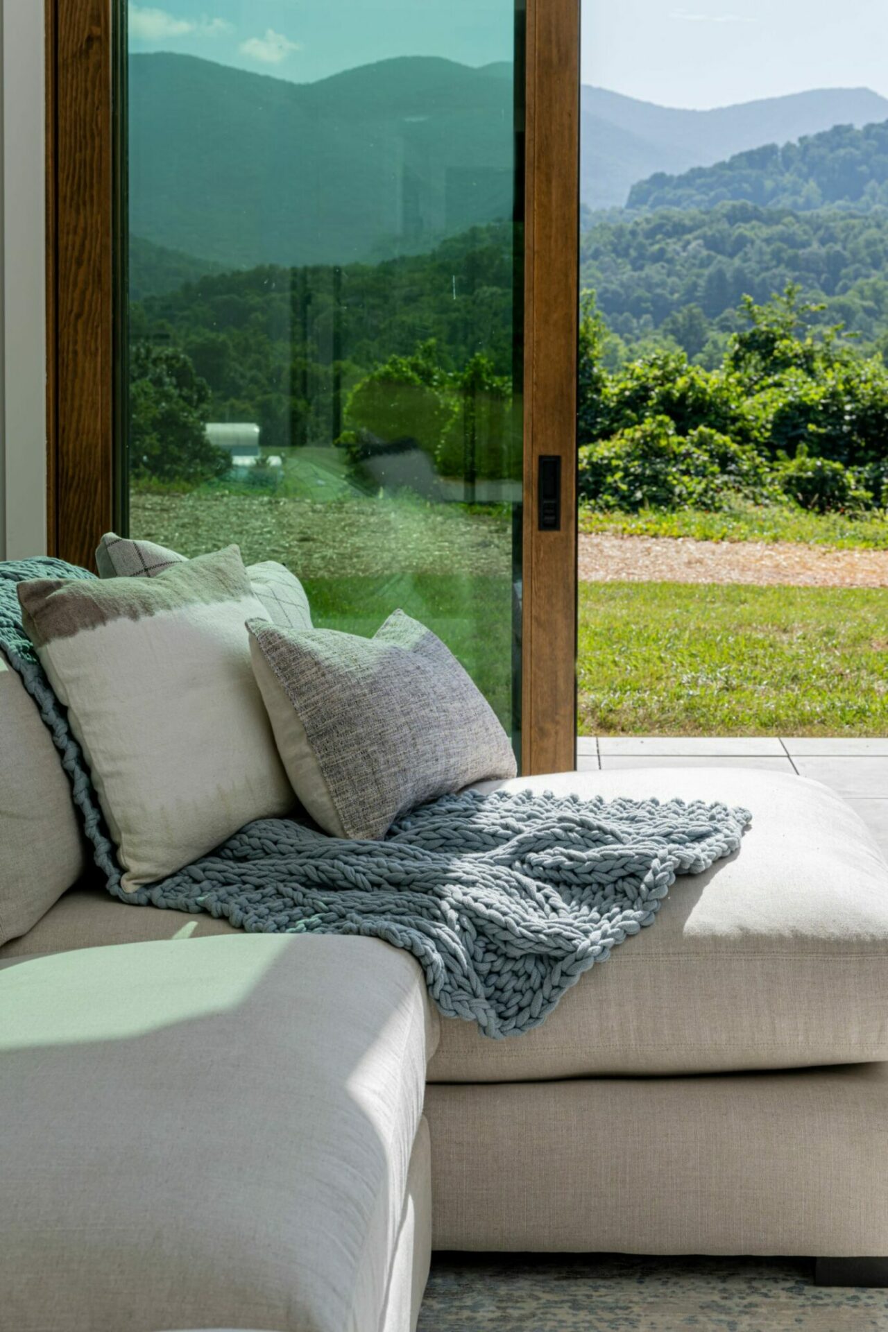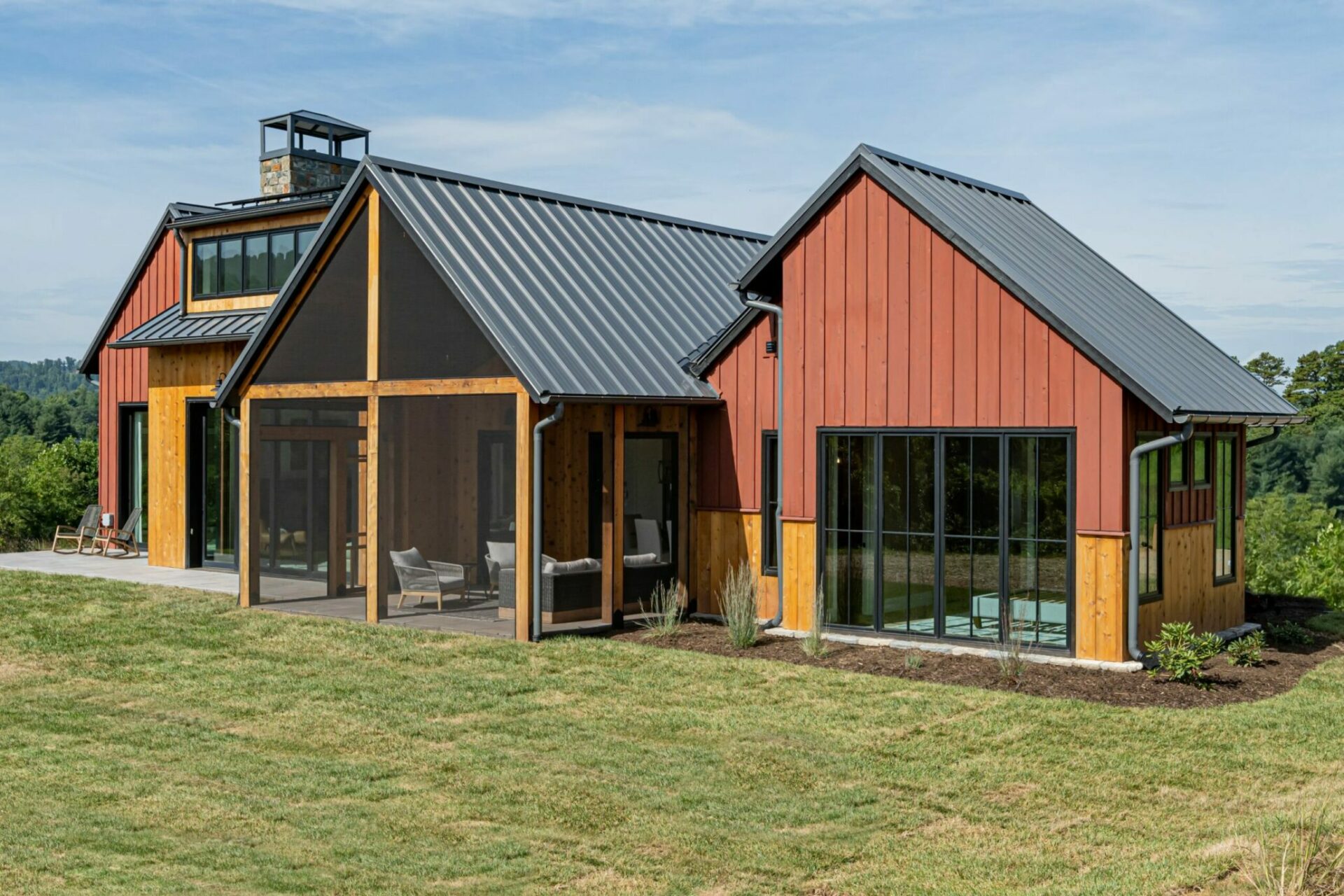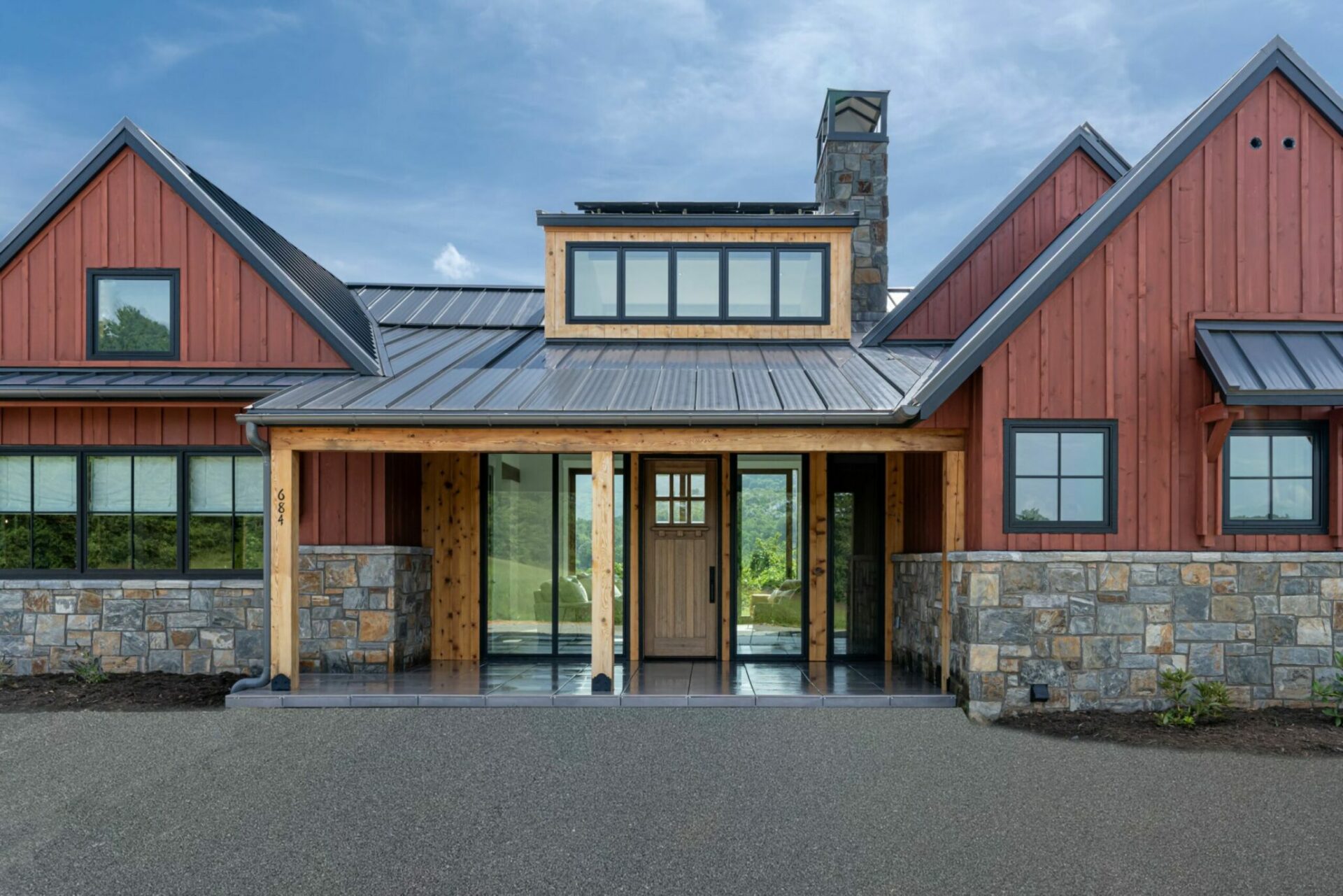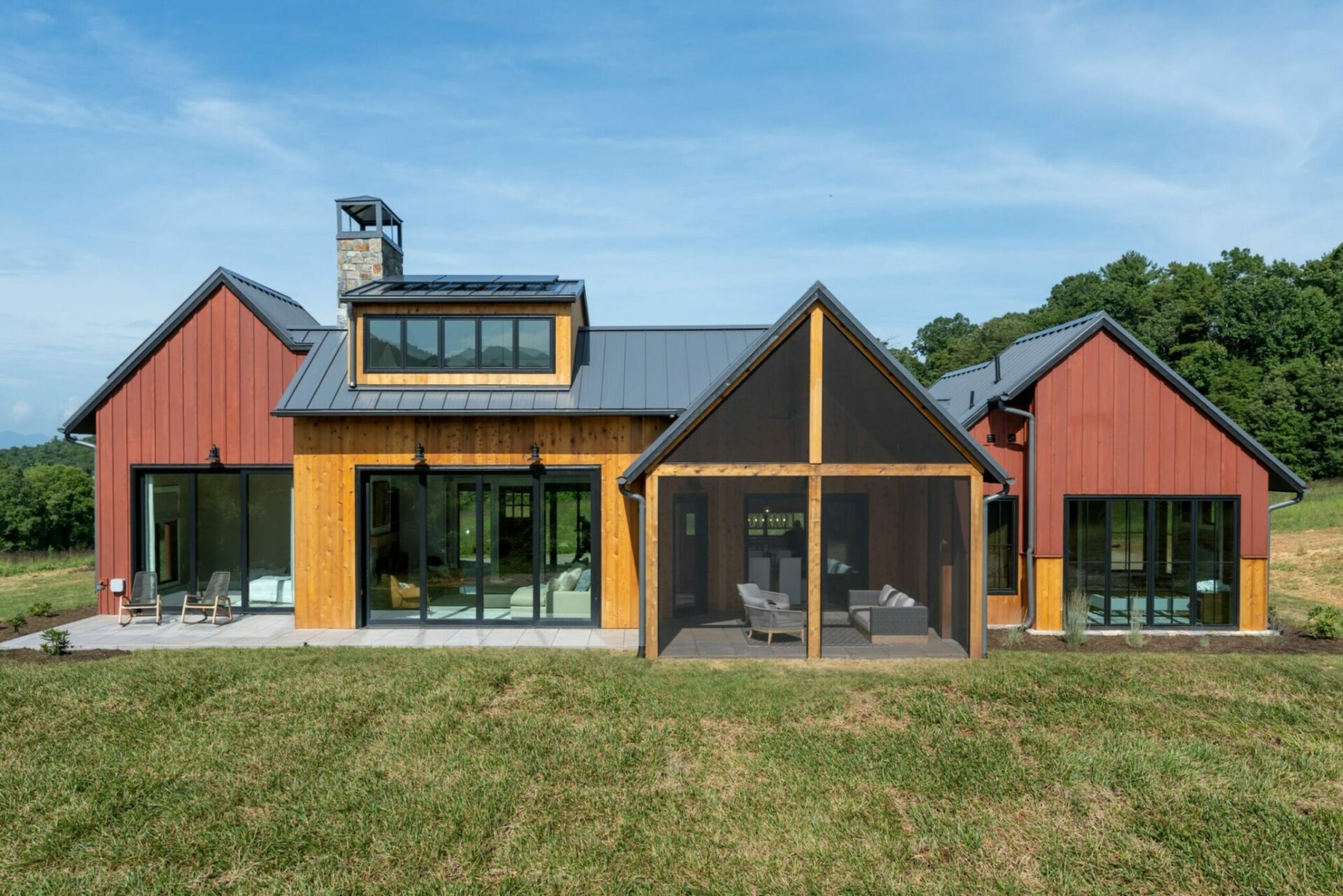 As former Asheville residents, our clients purchased land in north Asheville to build a vacation home where they would one day retire to. It was important for them to have a home that was aging-in-place certified and energy efficient. This berry-colored farmhouse is a single level build, includes stepless entryways, wider doorways, an accessible shower with seating, and plenty of space around furniture and cabinetry to maneuver around the home safely. This home also scored -22 on the HERS scale, meaning that it produces 22% more power than it uses.