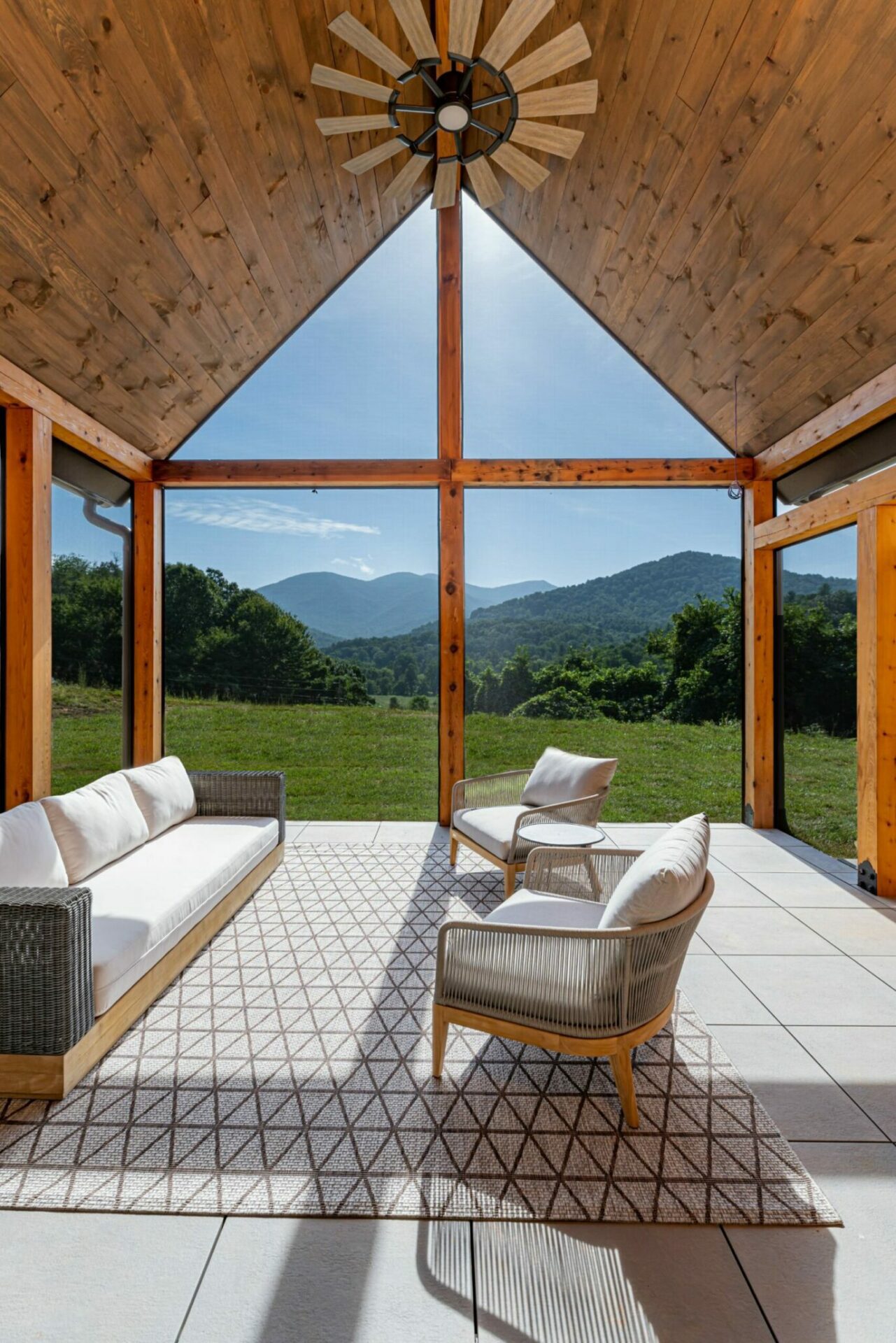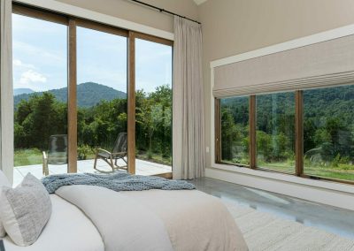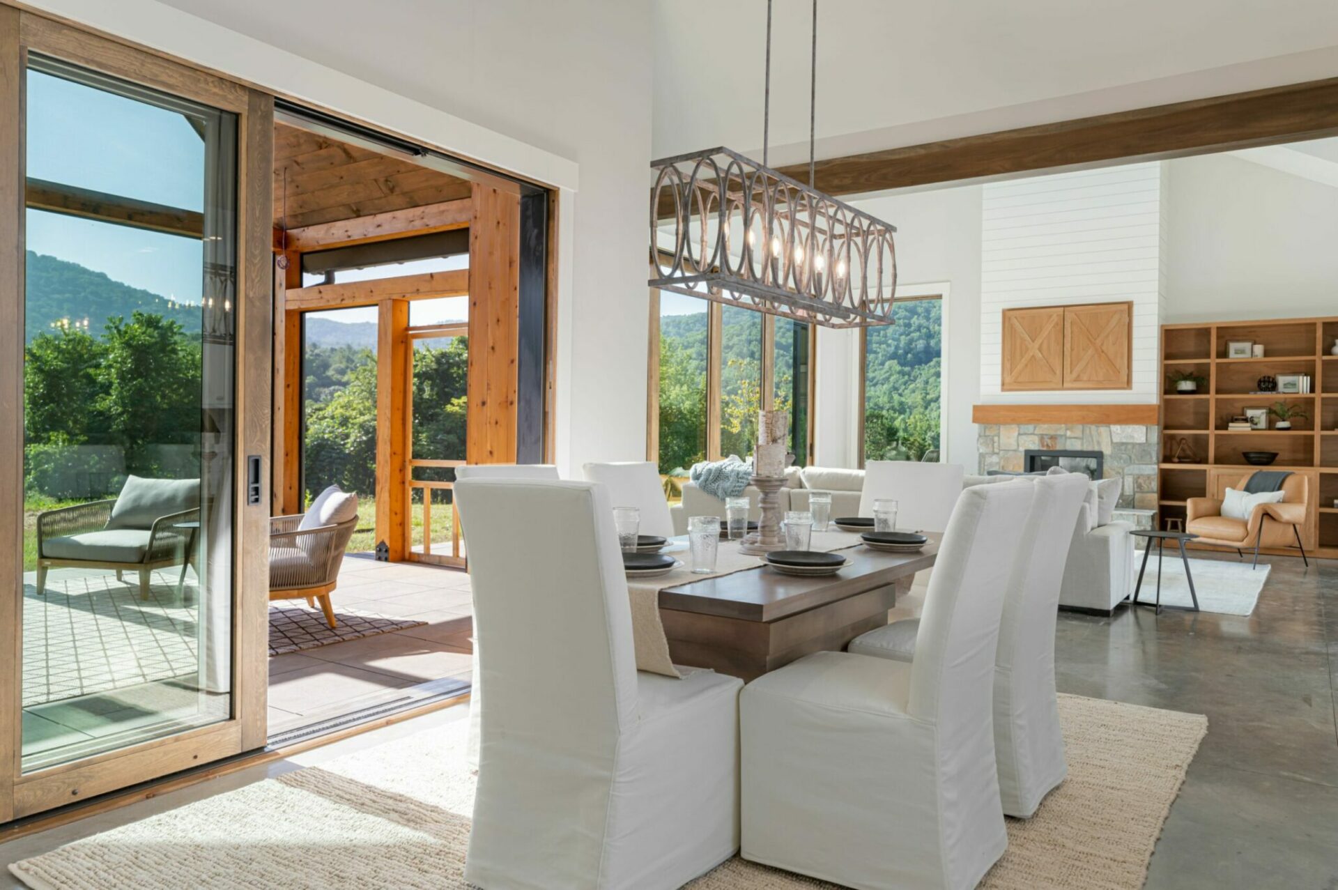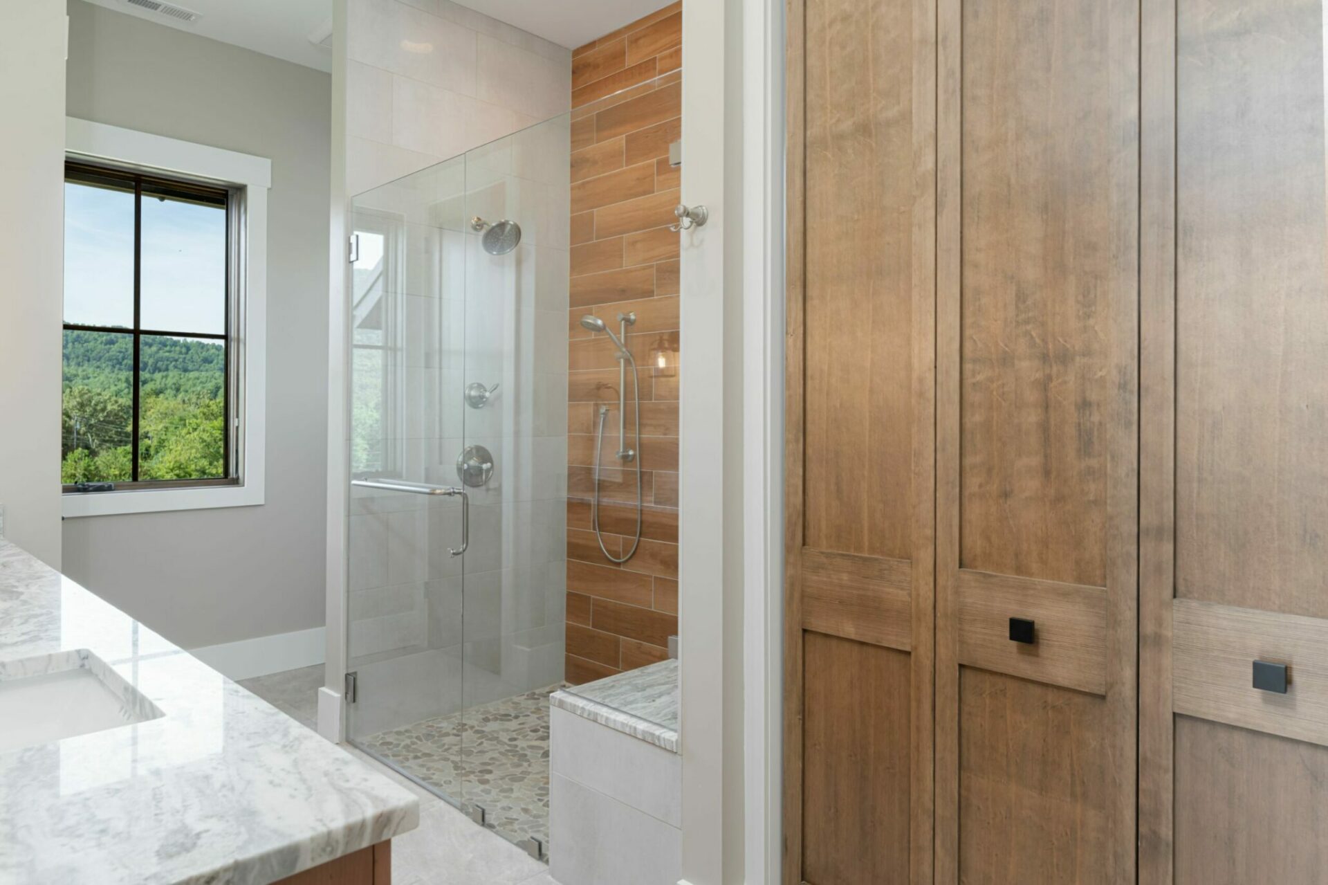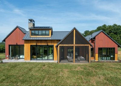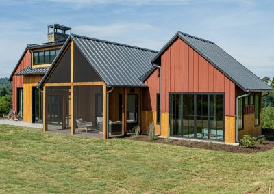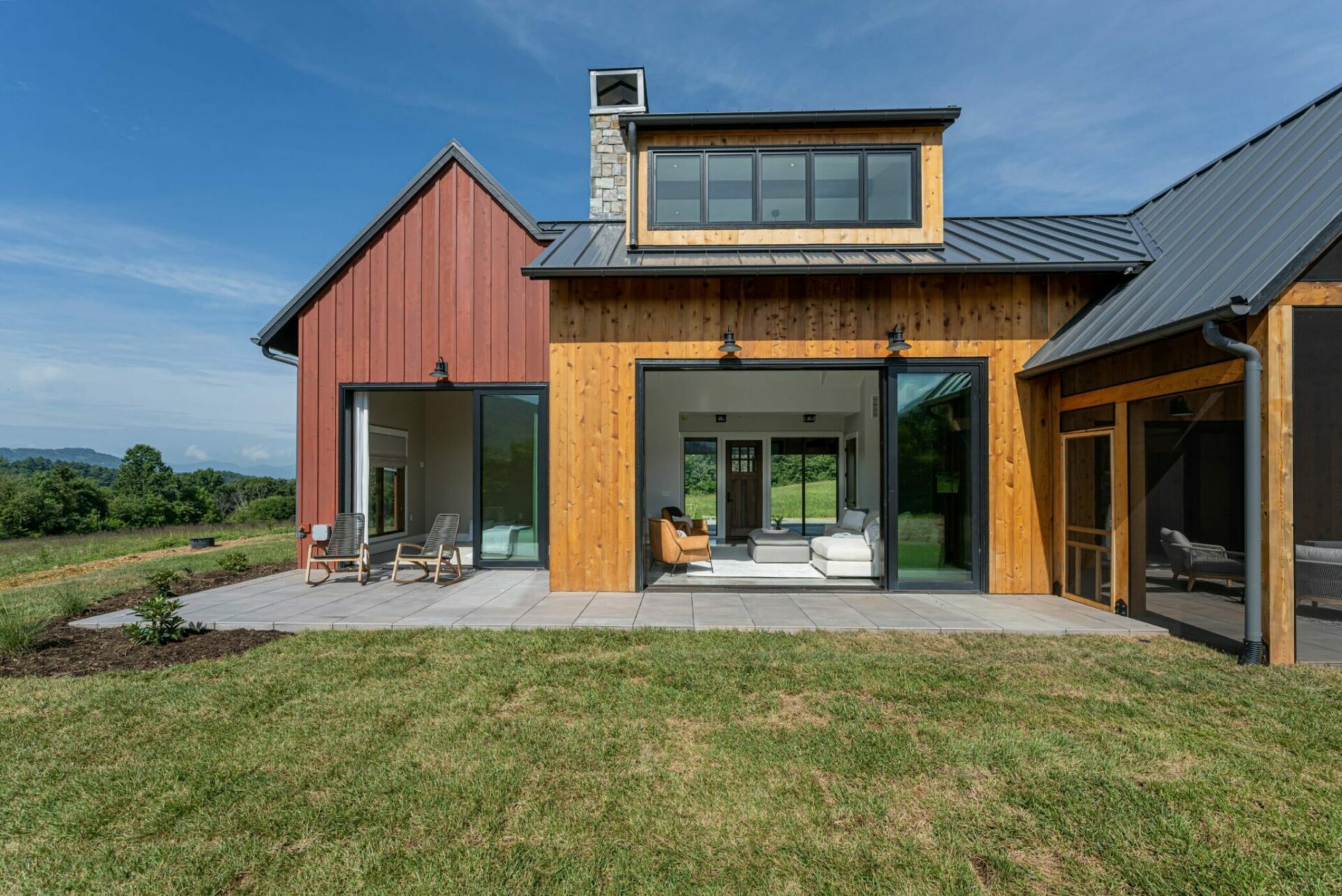 As former Asheville residents, our clients purchased land in north Asheville to build a vacation home where they would one day retire to. It was important for them to have a home that was aging-in-place certified and energy efficient. This berry-colored farmhouse is a single level build, includes stepless entryways, wider doorways, an accessible shower with seating, and plenty of space around furniture and cabinetry to maneuver around the home safely. This home also scored -22 on the HERS scale, meaning that it produces 22% more power than it uses.