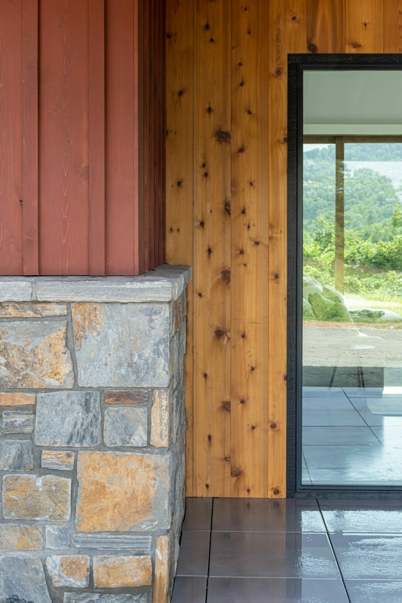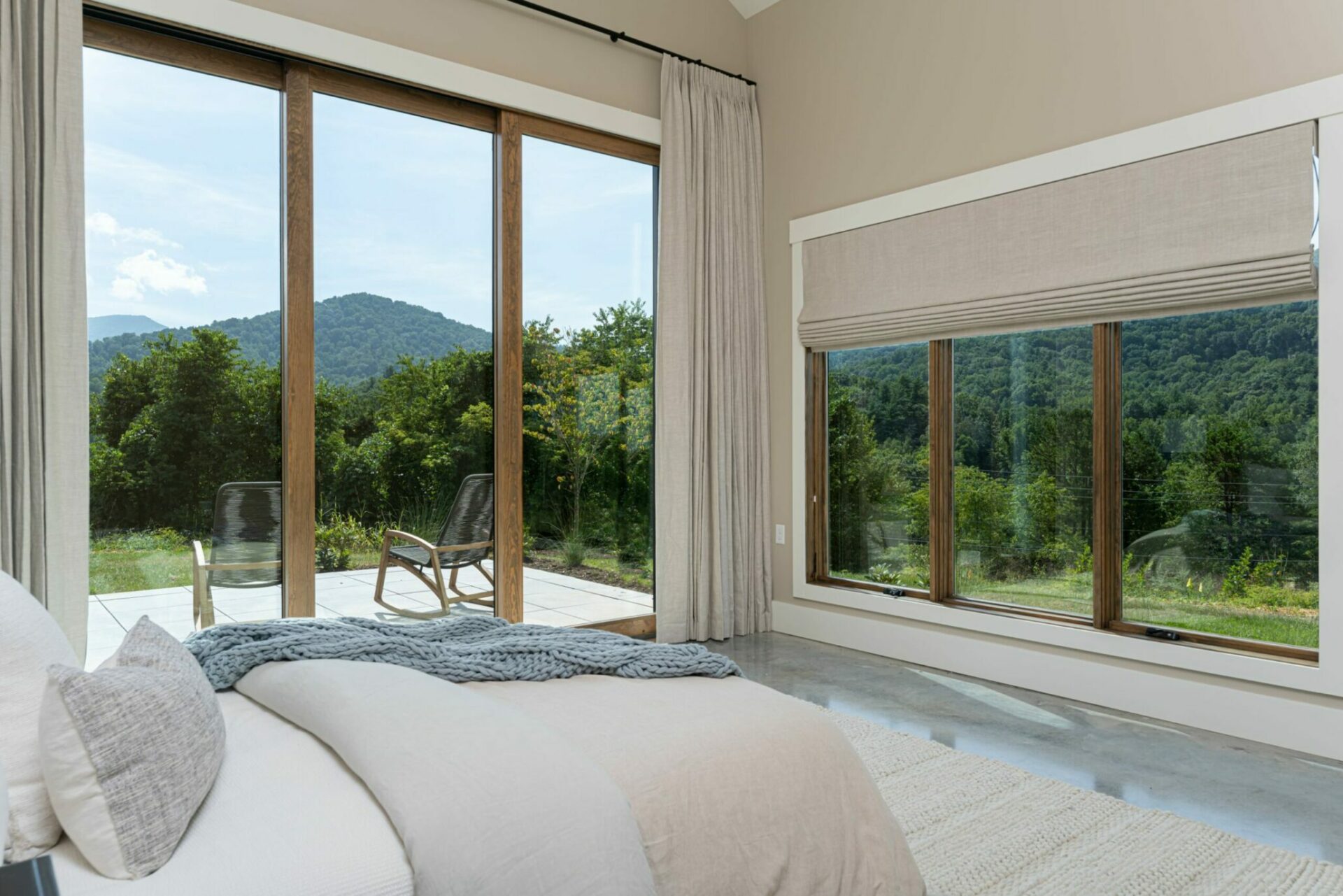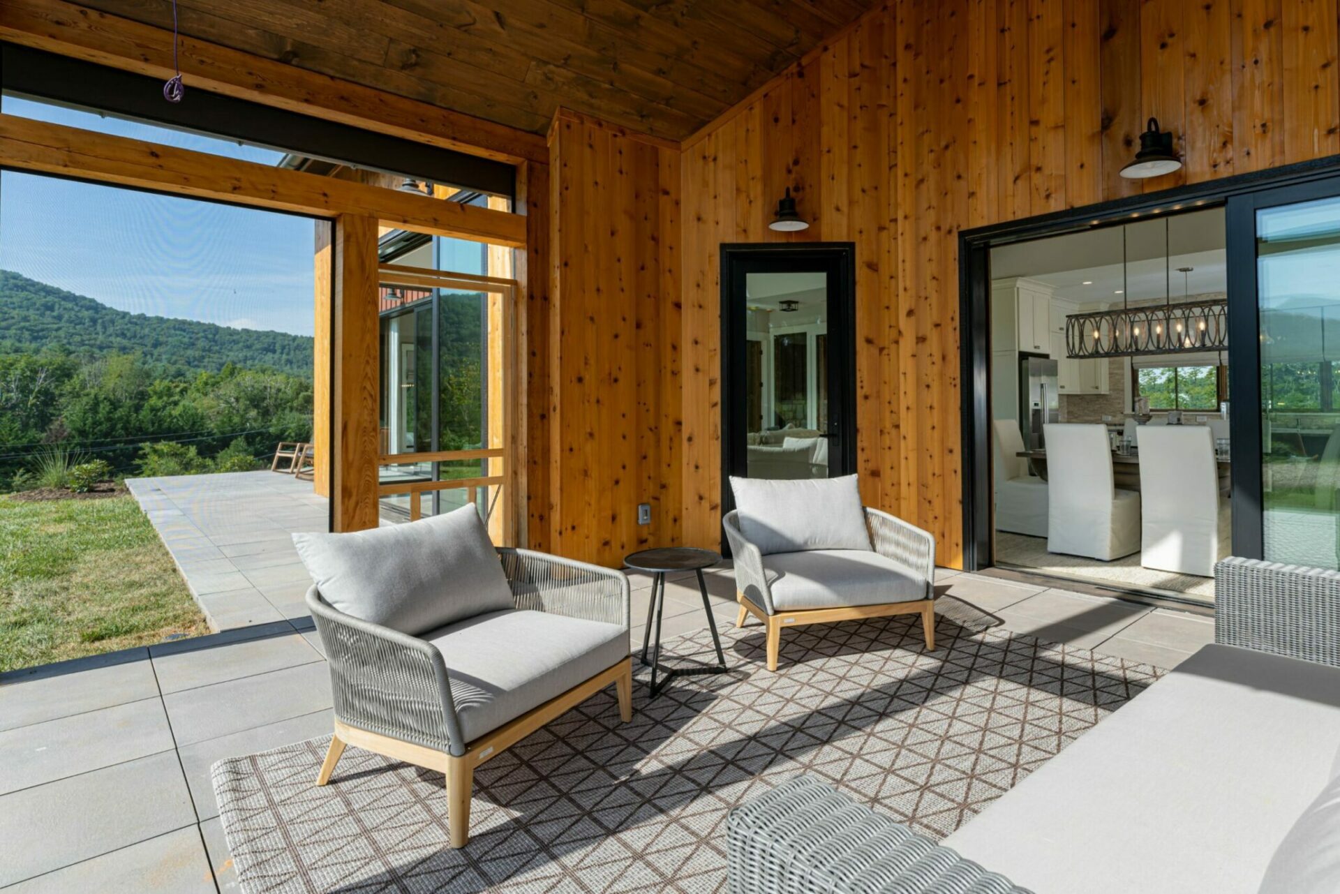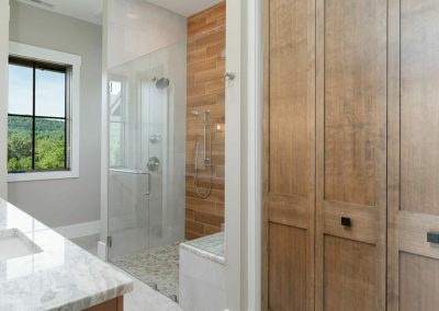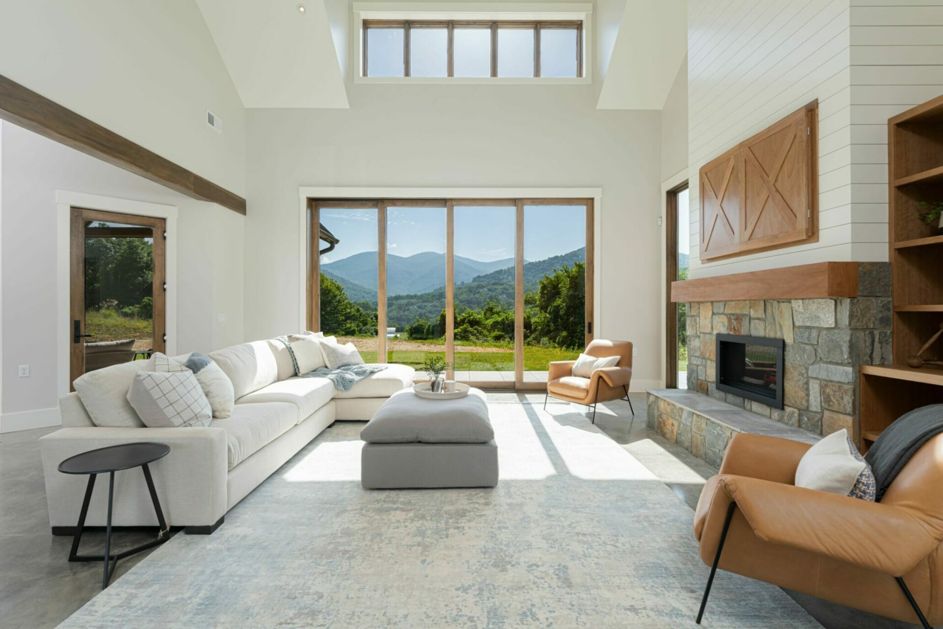 As former Asheville residents, our clients purchased land in north Asheville to build a vacation home where they would one day retire to. It was important for them to have a home that was aging-in-place certified and energy efficient. This berry-colored farmhouse is a single level build, includes stepless entryways, wider doorways, an accessible shower with seating, and plenty of space around furniture and cabinetry to maneuver around the home safely. This home also scored -22 on the HERS scale, meaning that it produces 22% more power than it uses.
