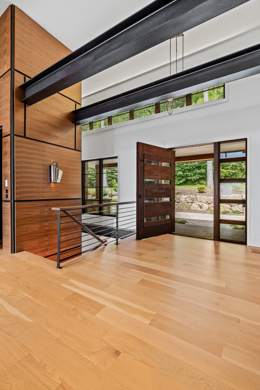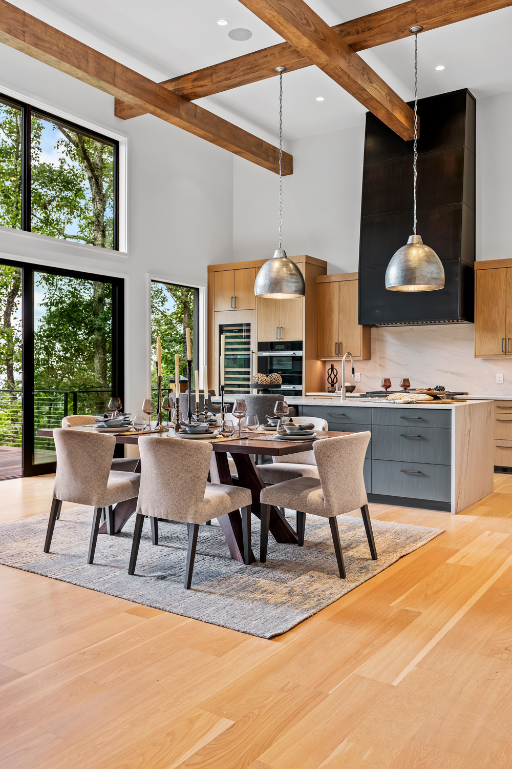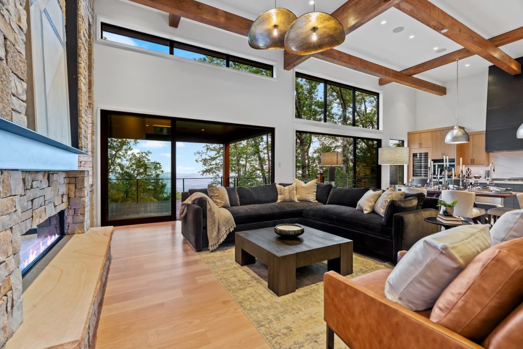 - A standing-seam metal roof and heavy timber details that enhance durability and modern style